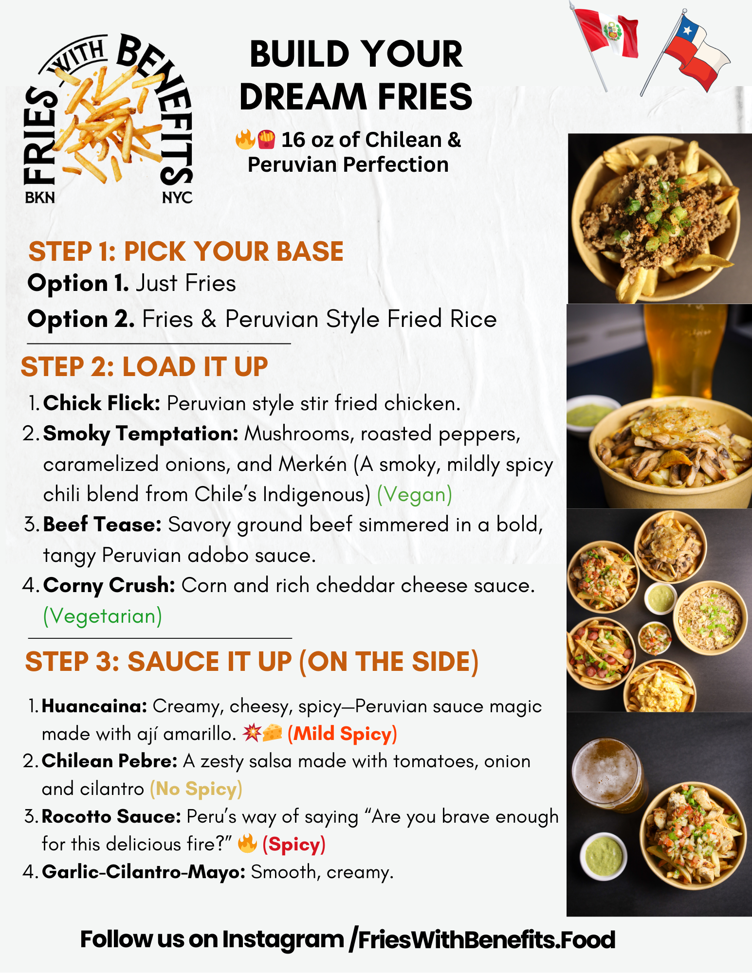 Weโre taking inspiration from everywhereโthe loaded fries of Chile, the rich spices of Peru, and flavors from all over the worldโto create the ultimate fry experience. This is for the food lovers, the flavor seekers, and everyone who knows that fries deserve more than just ketchup on the side.